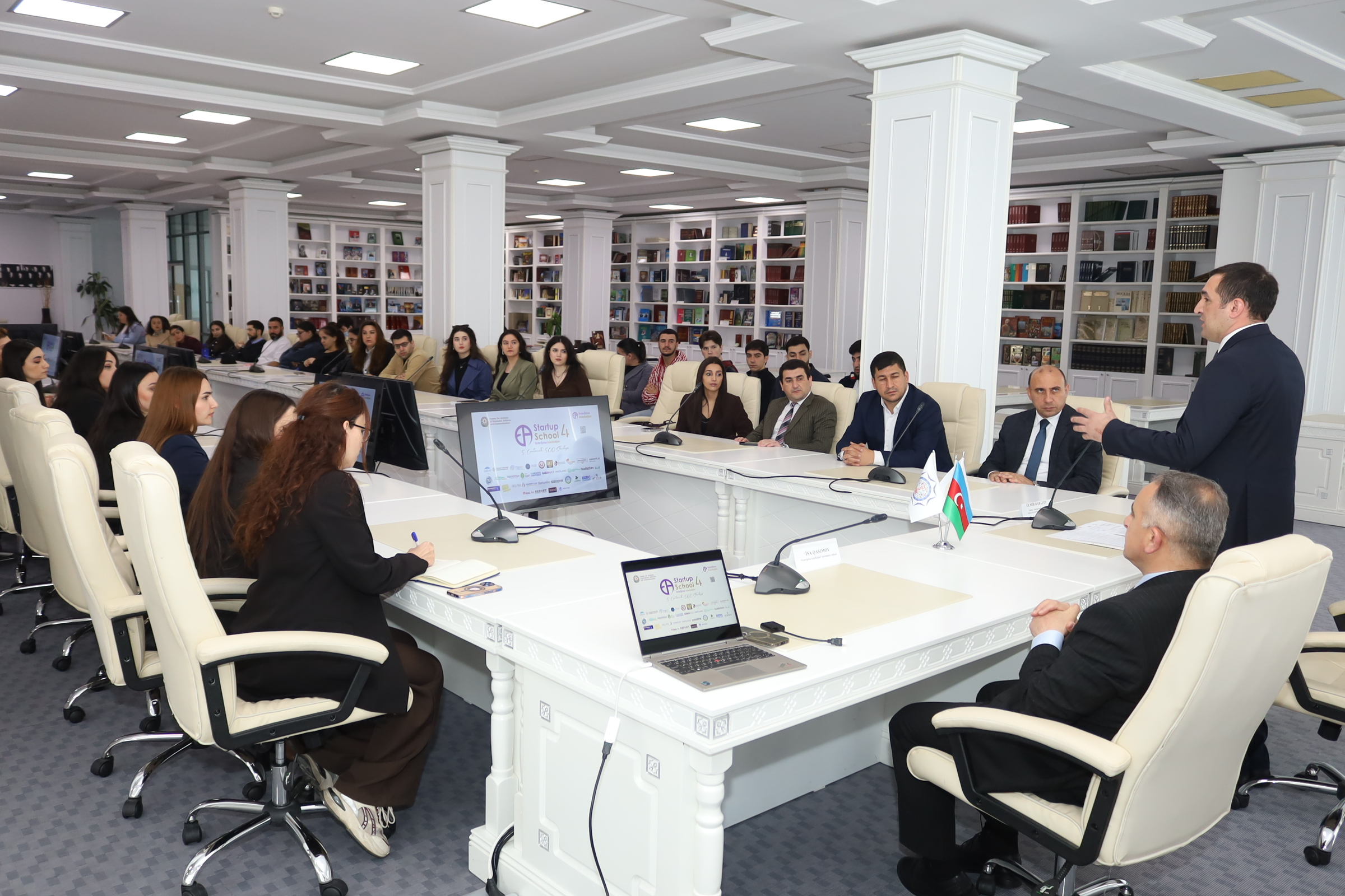 Azərbaycan Milli Elmlər Akademiyasının (AMEA) Mərkəzi Elmi Kitabxanasında AMEA Rəyasət Heyəti aparatının Elm və Təhsil şöbəsinin və Gənclər Akademiyasının birgə təşkilatçılığı ilə İqtisadi İslahatların Təhlili və Kommunikasiya Mərkəzinin (İİTKM) “Enterprise Azerbaijan” portalının həyata keçirdiyi “Startup School 4: Five Continents – 500 Startups” proqramı çərçivəsində təlim və infosessiya görüşü keçirirlib.